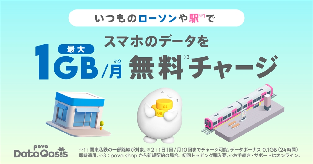 ① キャンペーン期間中に、povo Data Oasis で1回以上データチャージを行うこと