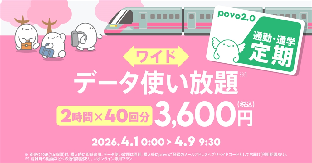 | 「プリペイドコードデータ使い放題※2(2時間)」40回分 | In principle, it will be sent by email immediately after purchase *3 | May 31, 2026 23:59 | 3,600円 (税込) |