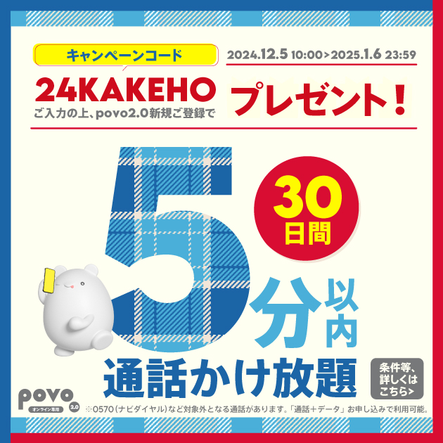 ・オンライン専用のプランなので、お手続き・サポートはすべてオンラインとなります。povo2.0アプリや公式サイトからお問い合わせください。
