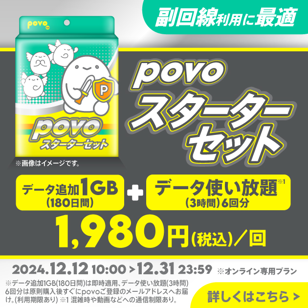 基本料が無料※でコストをかけずに回線を持てるので、もしもの備えの副回線としてpovoはピッタリです。