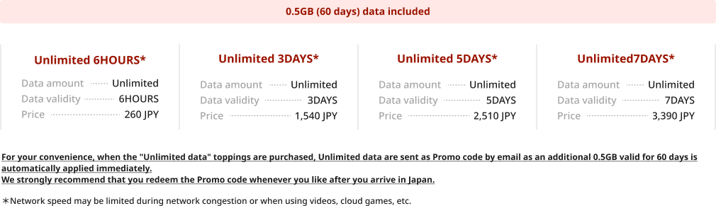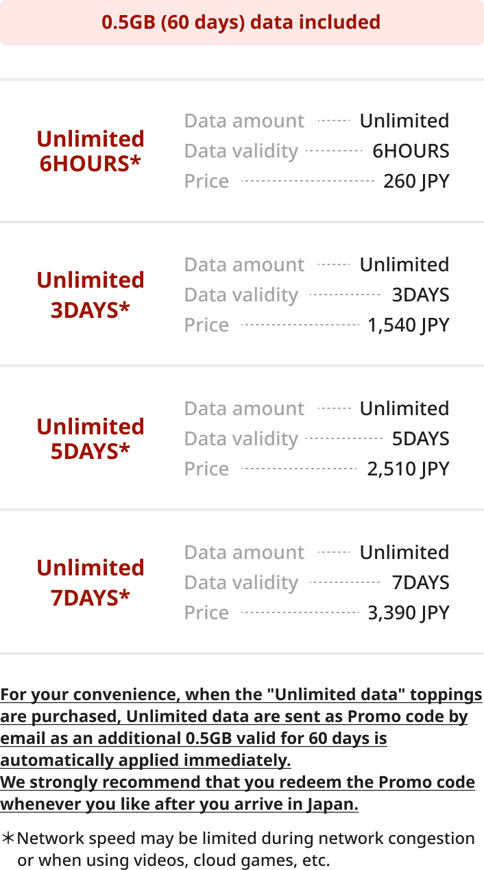 After signing up for the "Japan SIM", enter the promo code to receive “24 Hours of unlimited data”