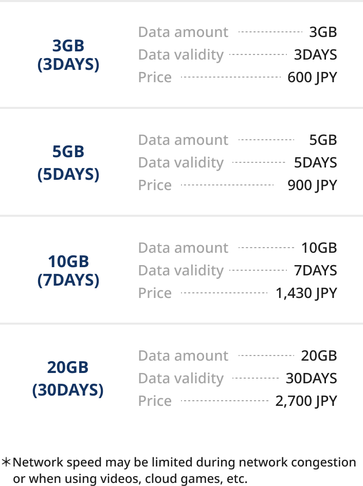 ●Japan SIM account is automatically terminated 90 days after eSIM activation.