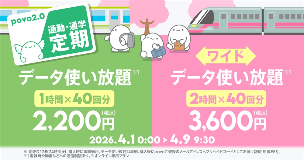 | 「プリペイドコードデータ使い放題※2(2時間)」40回分 | 원칙, 구입 후 곧바로 메일로 송부 ※3 | 2026년 5월 31일 23시 59분 | 3,600円 (税込) |