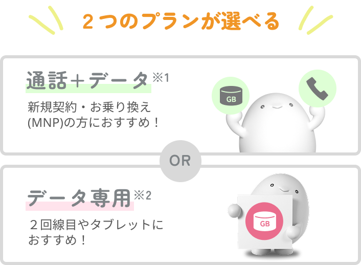 ※1 通話+データは別途通話料、SMS送信料がかかります。