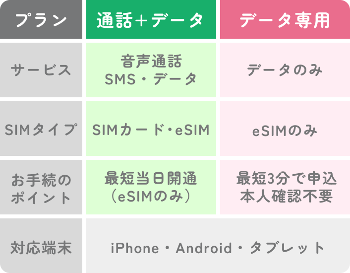 通話+データプランおよびデータ専用プランどちらも13歳以上からご利用いただけます。