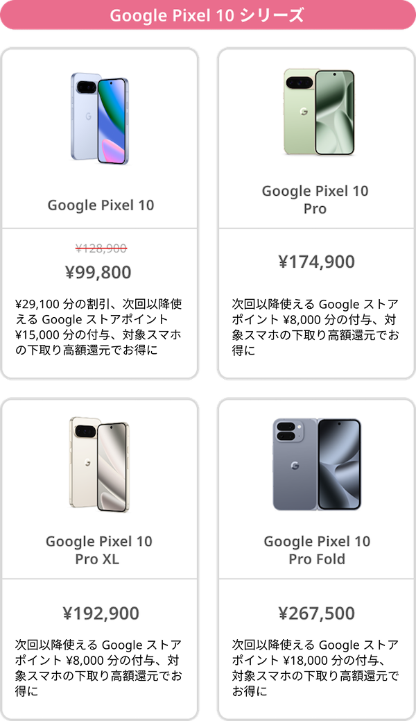 ●プロモーションコードは、Google Pixel 10、Google Pixel 10 Pro、Google Pixel 10 Pro XL、Google Pixel 10 Pro
