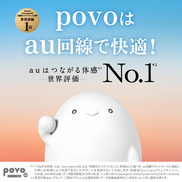※本リワードの使用には「povo2.0アプリ」のダウンロードとpovo2.0のご契約が必要となります。
