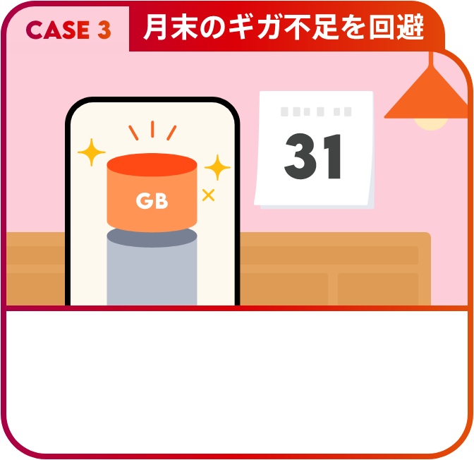 月末ギガが足りなくなった時、貯めたポイントをpovoのリワードと交換してギガをチャージできます。