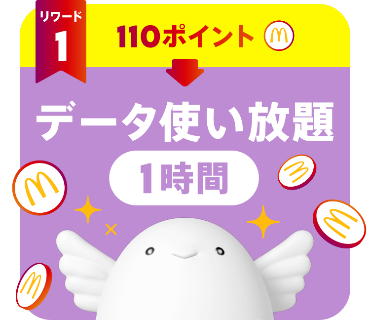 ※ネットワーク環境の混雑や不具合あるいはシステムメンテナンスなどにより、本リワードが使用できなかった場合であっても、日本マクドナルド株式会社、KDDI株式会社および沖縄セルラー電話株式会社は責任を負いかねます。