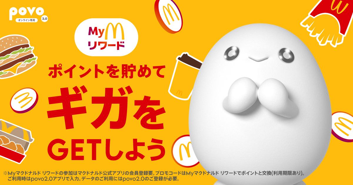 KDDIおよび沖縄セルラーは、2025年10月1日から、日本マクドナルドが提供する「Myマクドナルド リワード」プログラムにおいて、povo2.0のデータトッピング「データ使い放題(注)(1時間)」および「1GB(30日間)」をリワード(特典)として提供開始します。