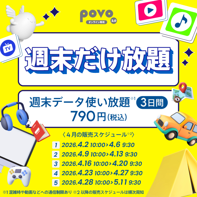KDDI、沖縄セルラー、KDDI Digital Lifeは、2026年4月23日から、povoの「ゴールデンウィークキャンペーン」(以下、GWキャンペーン)を開催します。