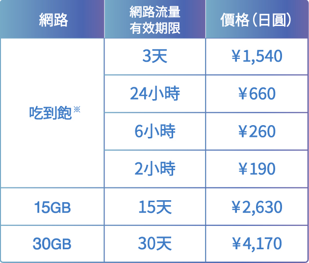 ・本上網服務僅限於日本國內使用,日本境外無法使用。