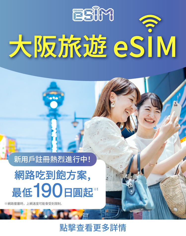 ・Osaka eSIM 觀光方案由 KDDI 株式會社提供。