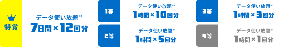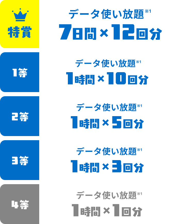特賞:データ使い放題ボーナス(7日間) 12回分