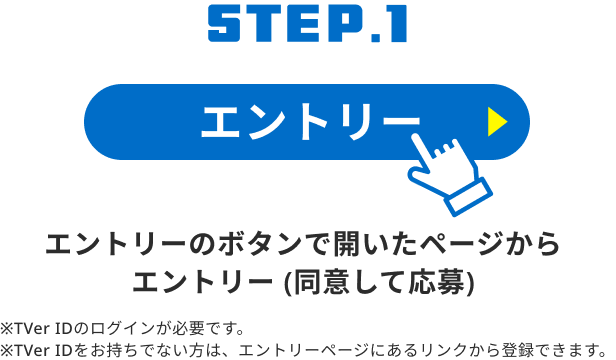 本ページのエントリーボタンより、株式会社TVerのサイト(本キャンペーンの応募サイト)に遷移します。