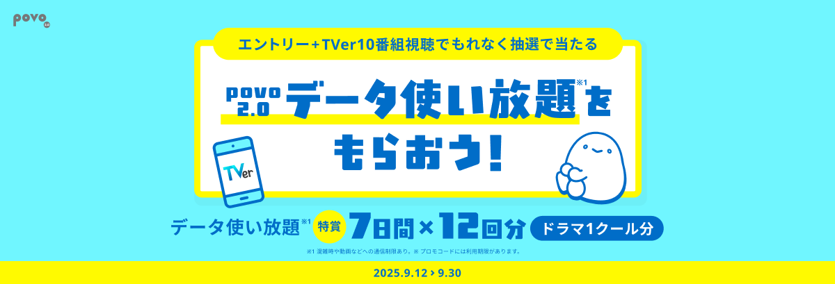 お客さまのご事情(メールアドレスが有効なものでない場合や迷惑メールフィルターにより当社や株式会社TVerからのメールが受信できなかった場合を含みますがこれらに限られません)により、メールを受信できなかった場合は特典の対象外となります。