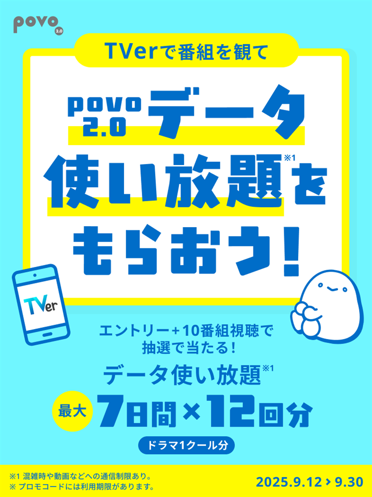 10/13(月)~10/31(金)の間に順次、TVerIDとして登録されたメールアドレス宛にプロモコードを送付します。